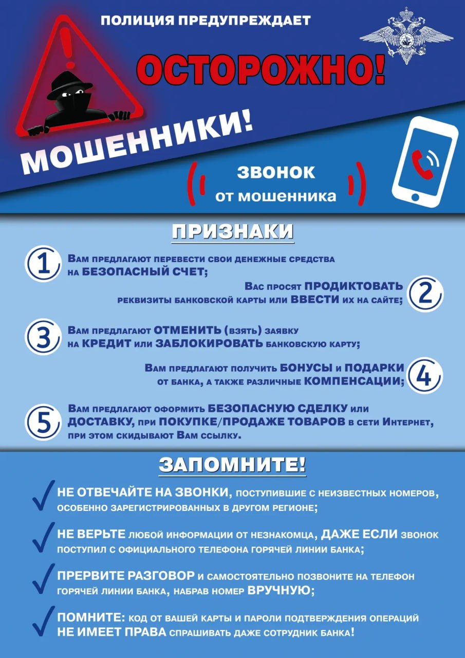 УМВД России по Тульской области предупреждает: любые обвинения в спонсировании терроризма или требования куда-то перечислить либо передать сбережения для декларирования или сохранения на «безопасном счете» поступают по телефону или в мессенджерах ТОЛЬКО от мошенников. Будьте бдительны!