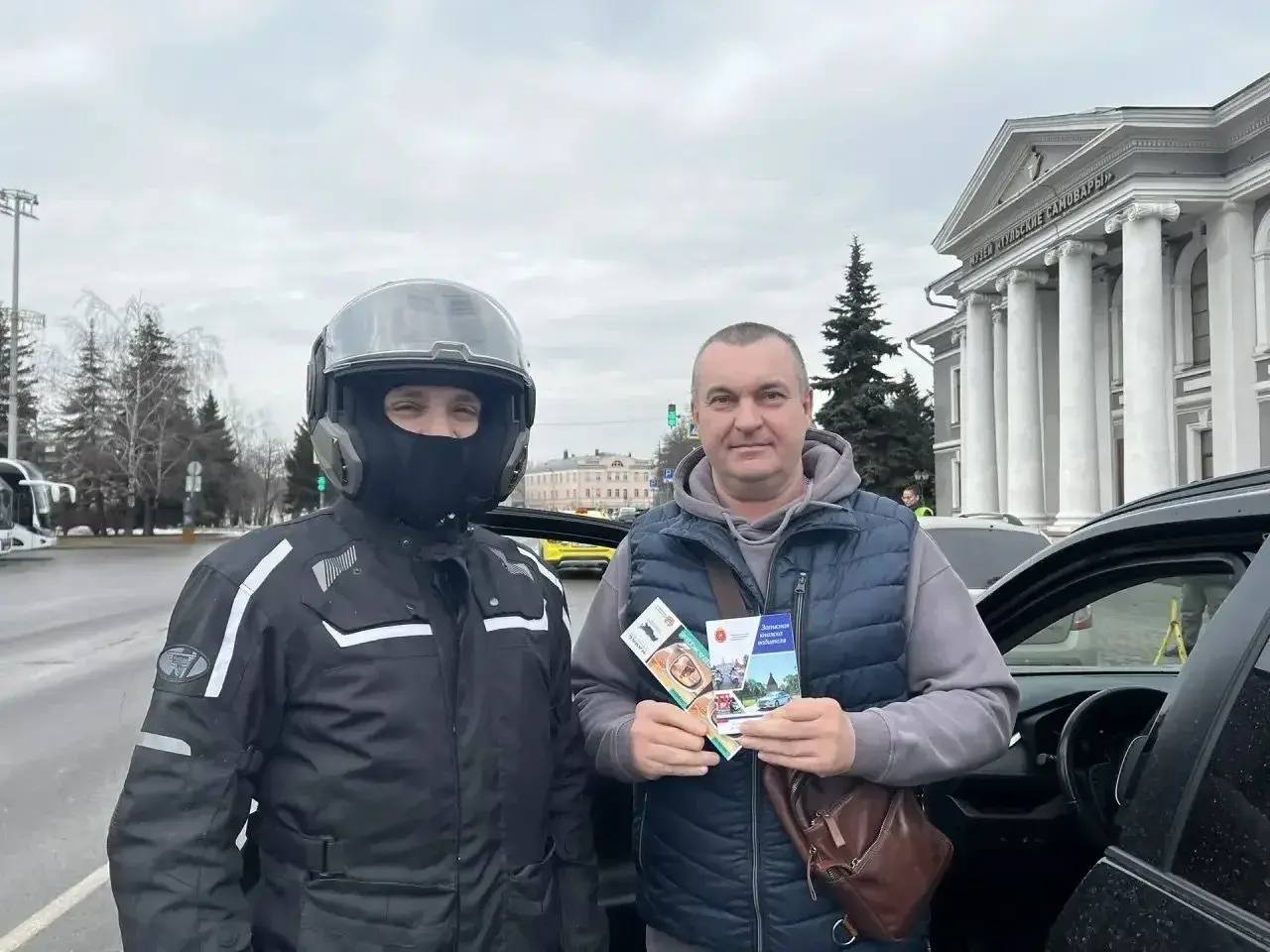 Всем участникам мероприятия стражи порядка и мотоциклисты вручали тематические памятки и записные книжки водителей, изготовленные в рамках федерального проекта «Безопасность дорожного движения» национального проекта «Инфраструктура для жизни».