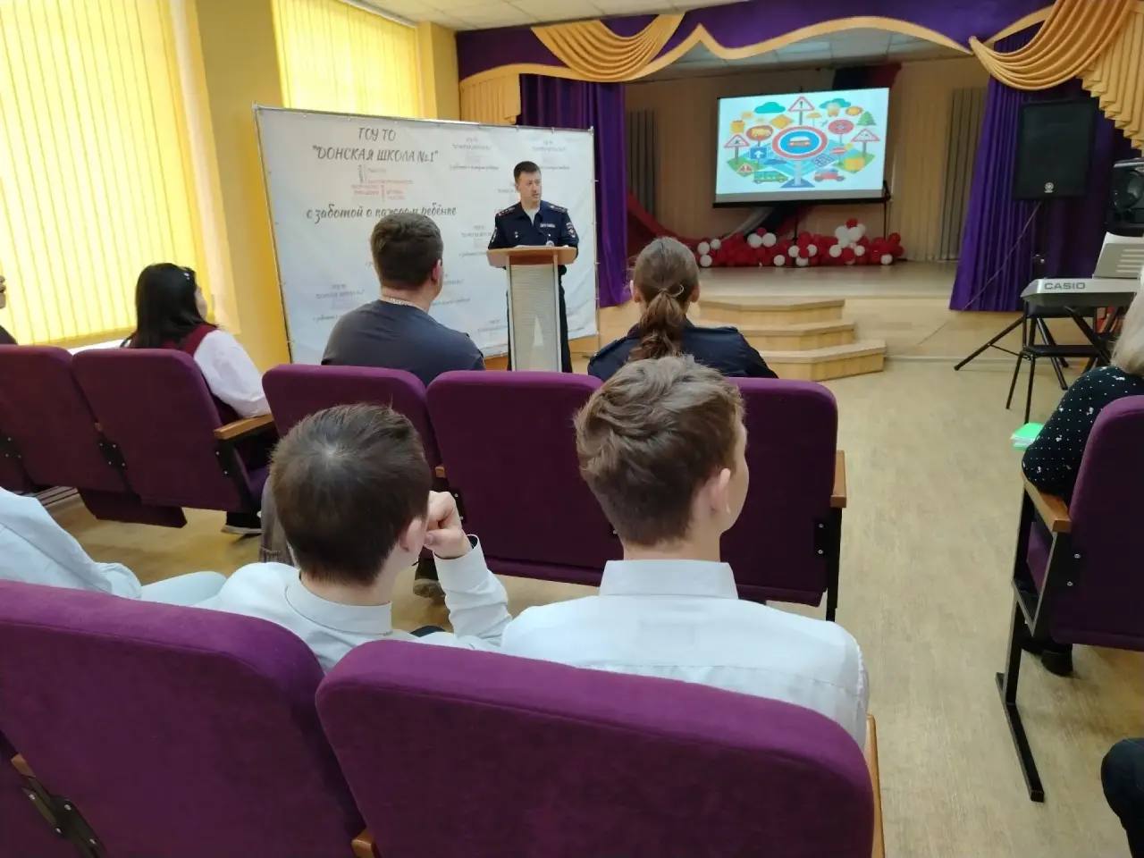 В рамках системной работы по обеспечению безопасности и формированию правосознания обучающихся сотрудники отделения Госавтоинспекции ОМВД России по городу Донскому Тульской области совместно с инспектором по делам несовершеннолетних приняли участие в масштабной профилактической встрече на базе ГОУ ТО «Донская школа №1».