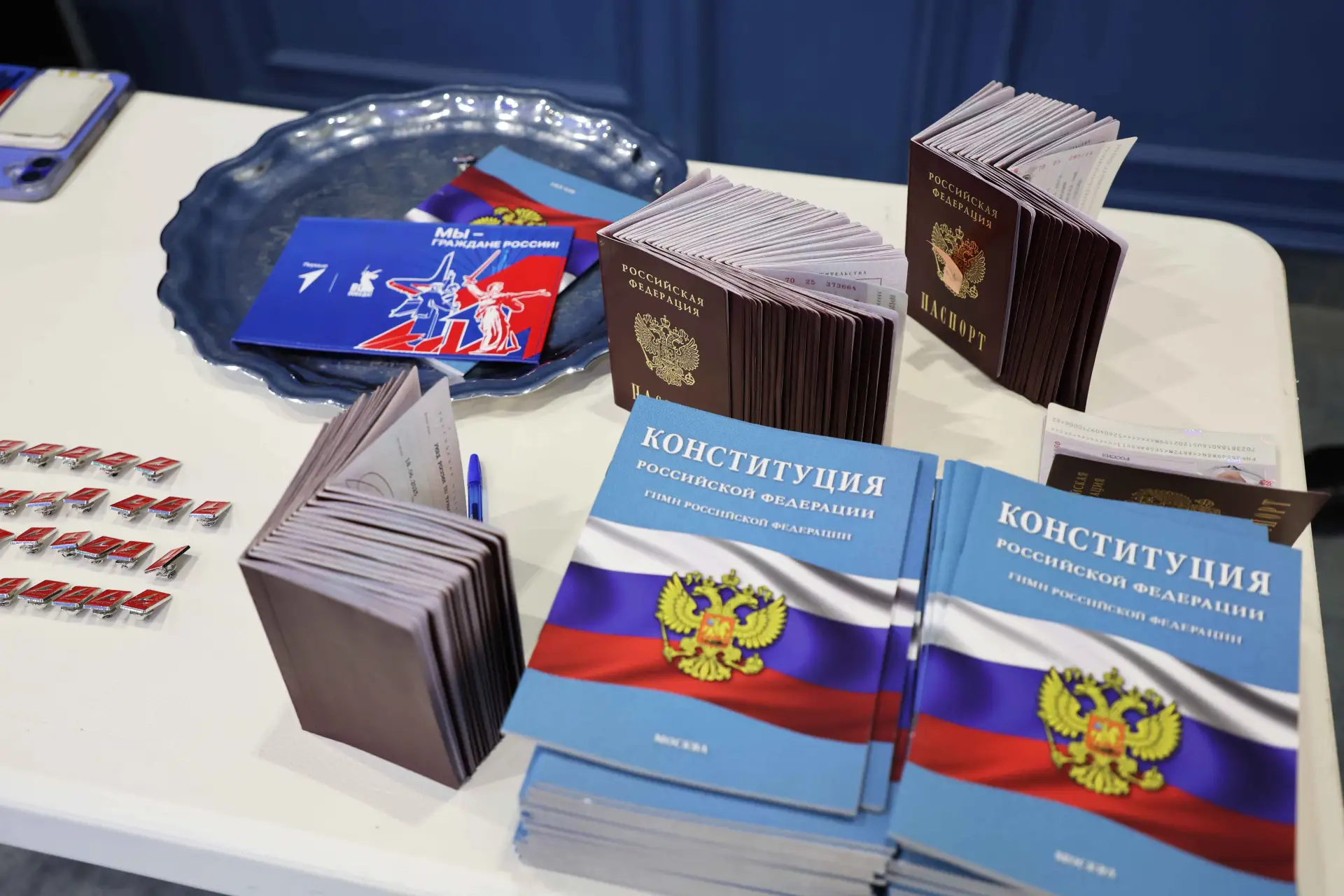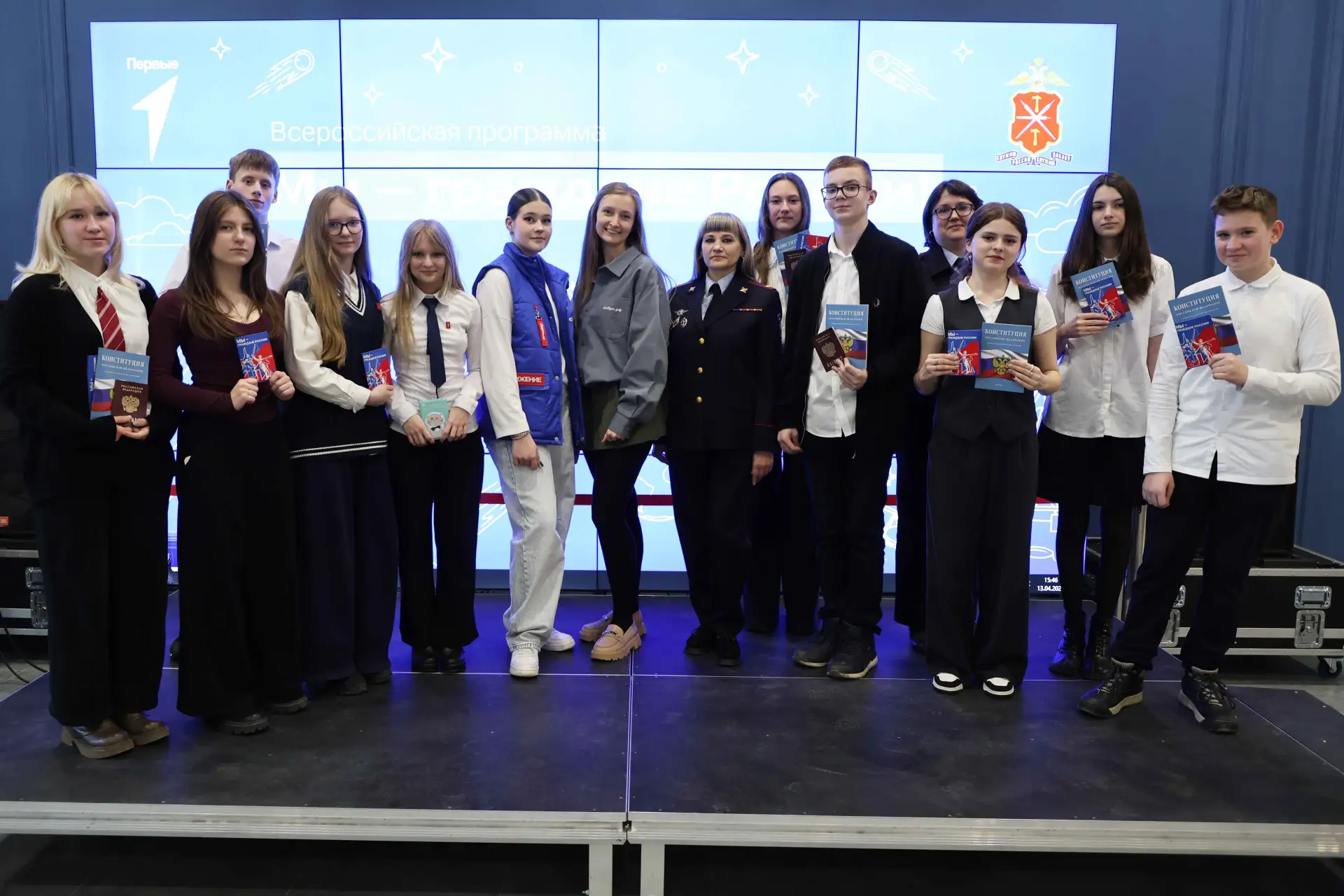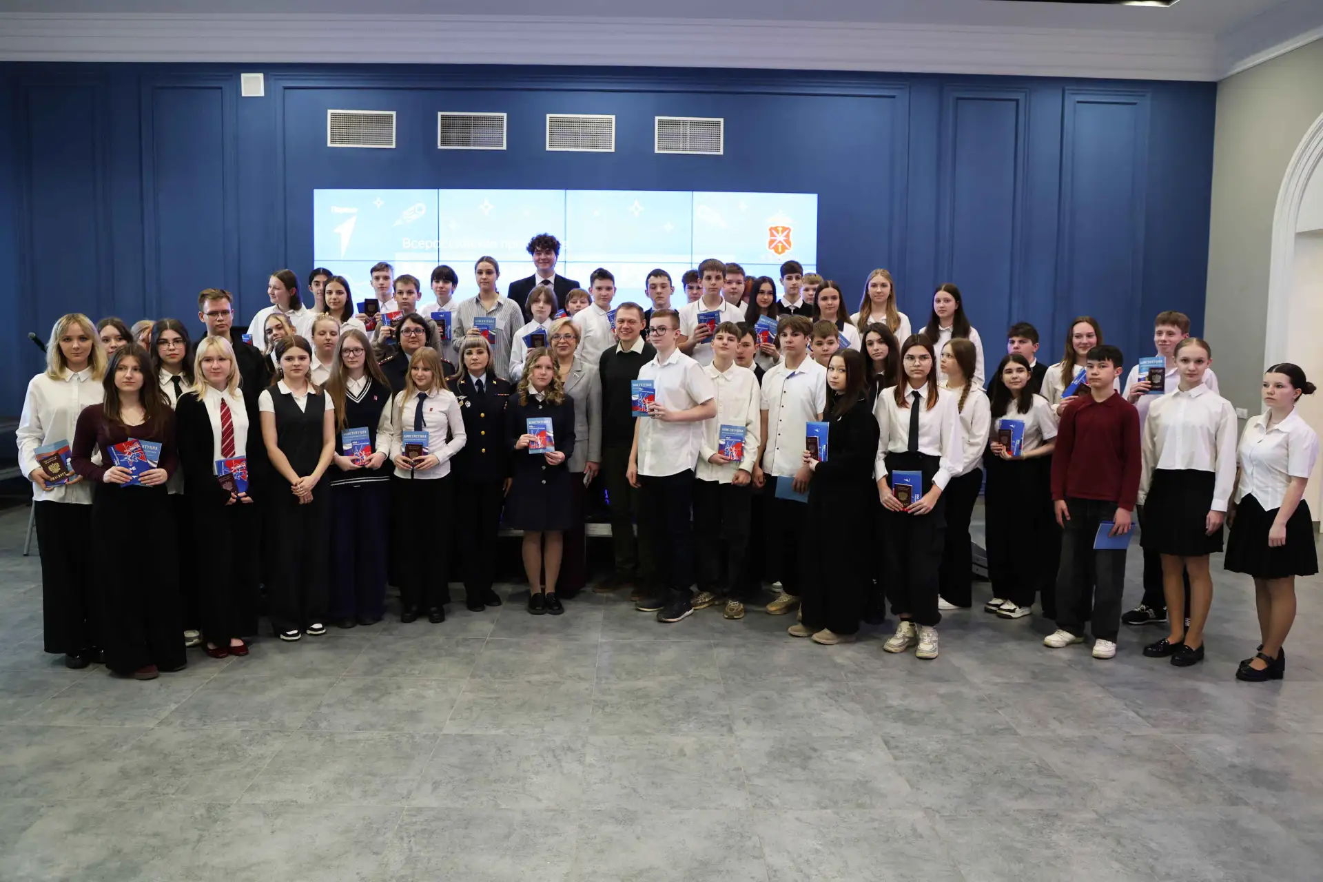 Почетные гости вручили школьникам их первые паспорта и брошюры с текстом Конституции Российской Федерации.