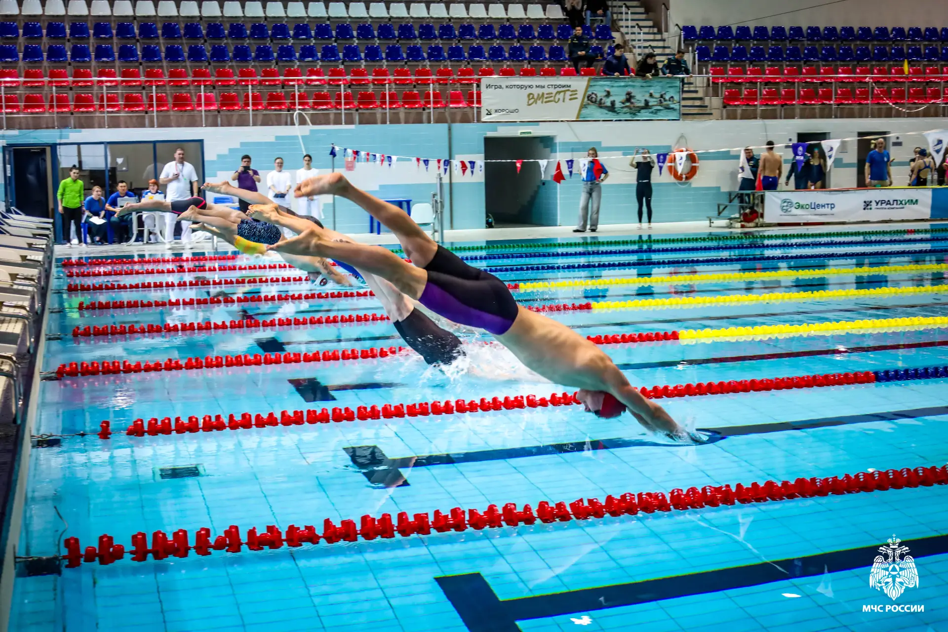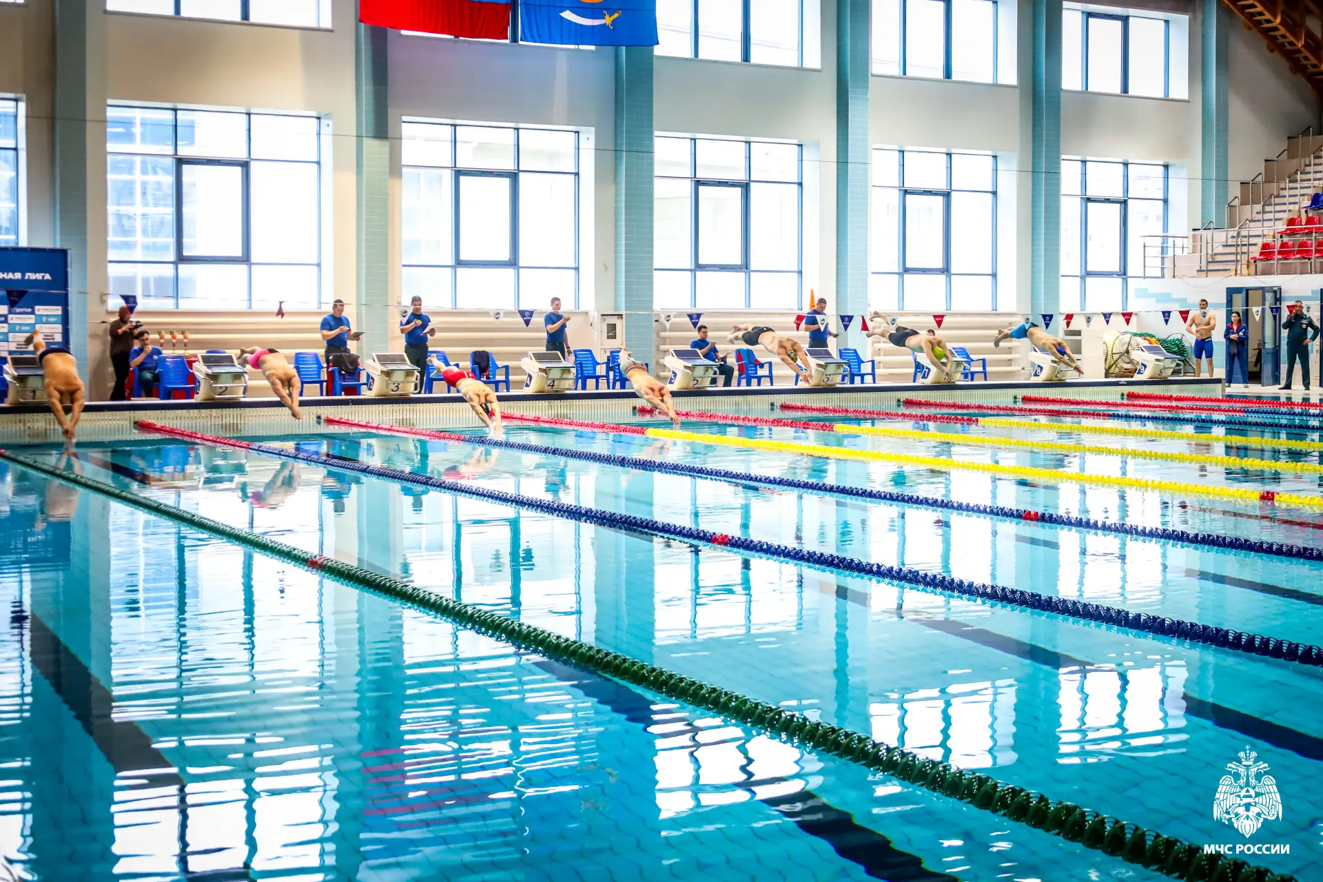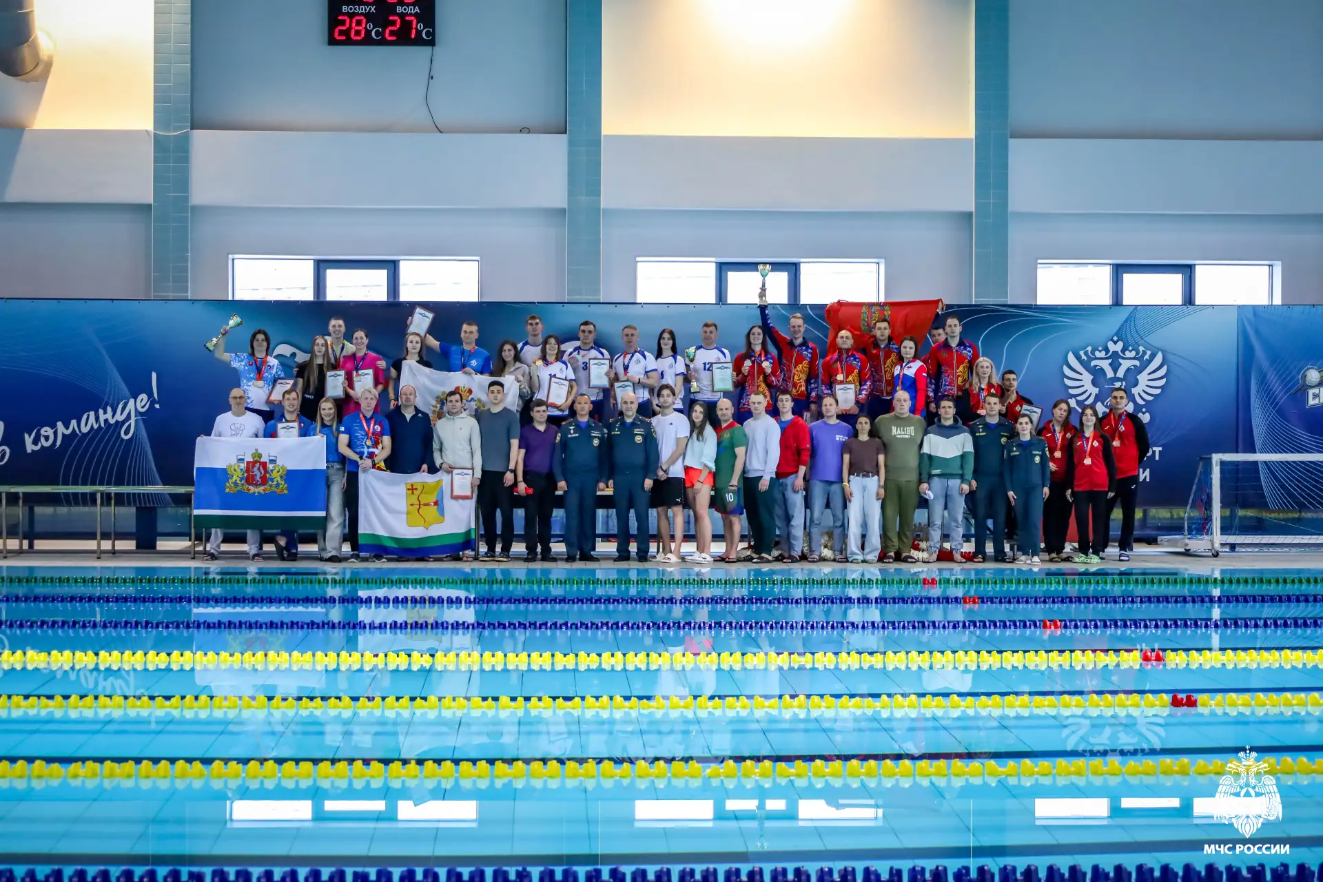 В Астрахани состоялся заключительный этап Спартакиады МЧС России по плаванию среди терорганов ведомства. Победители межрегиональных соревнований встретились в финале с соперниками из других федеральных округов и сразились за звание чемпионов страны. В ходе соревнований 50 мужчин и женщин в составе 8 сборных команд соревновались на 100-метровой дистанции и в эстафете. Все участники показали высокий уровень мастерства, волю к победе и настоящий командный дух.
