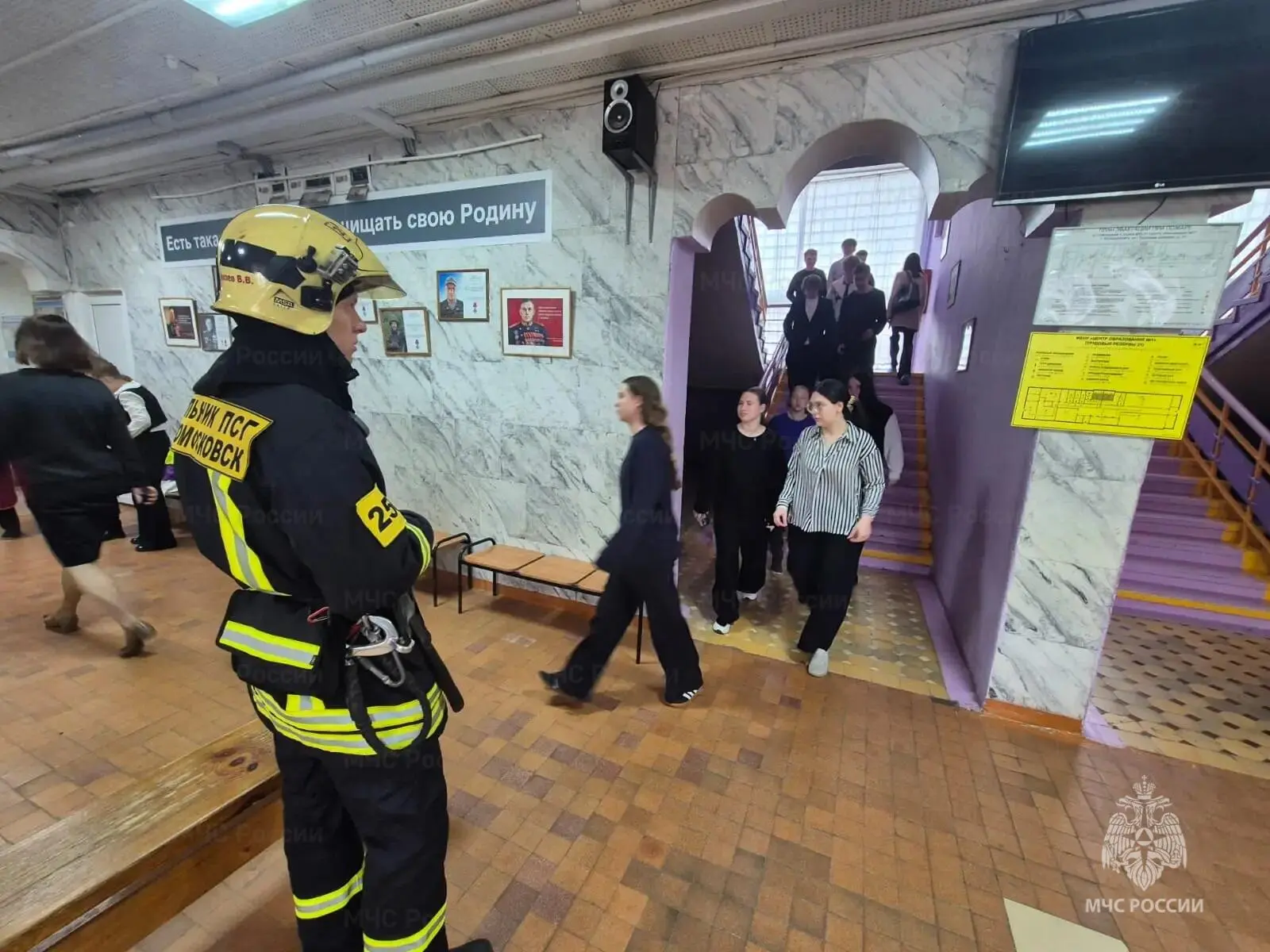 В одной из школ Новомосковска спасатели отработали тушение условного пожара