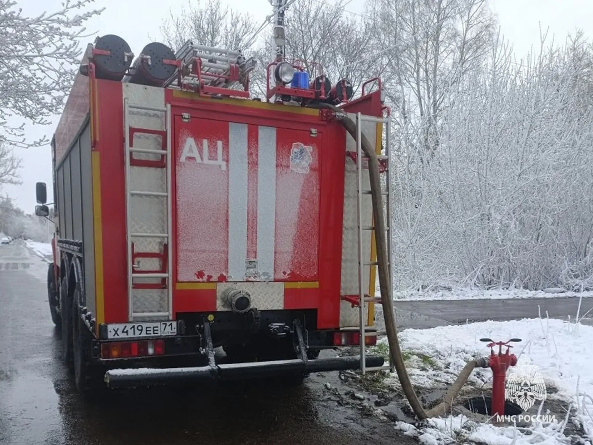 на улице Горького в городе Кимовск пожар в неэксплуатируемом сооружении потушили на 60 квадратах 9 спасателей и 2 единицы техники от МЧС России. Пострадавших нет.