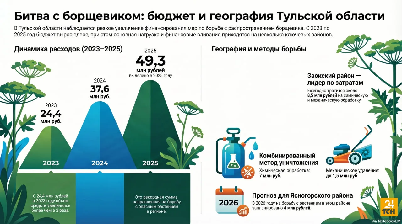 Борьба с борщевиком идёт уже много лет, сколько тратили на уничтожение сорняка - смотрите в нашей инфографике.
