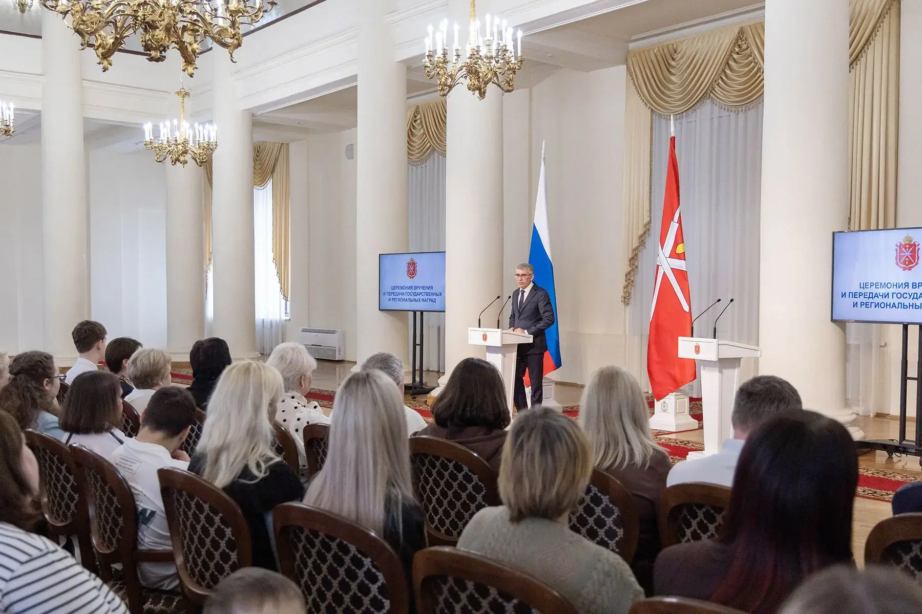 15 апреля в колонном зале Дома Дворянского собрания Губернатор Дмитрий Миляев вручил государственные, ведомственные и региональные награды участникам СВО и семьям погибших героев.