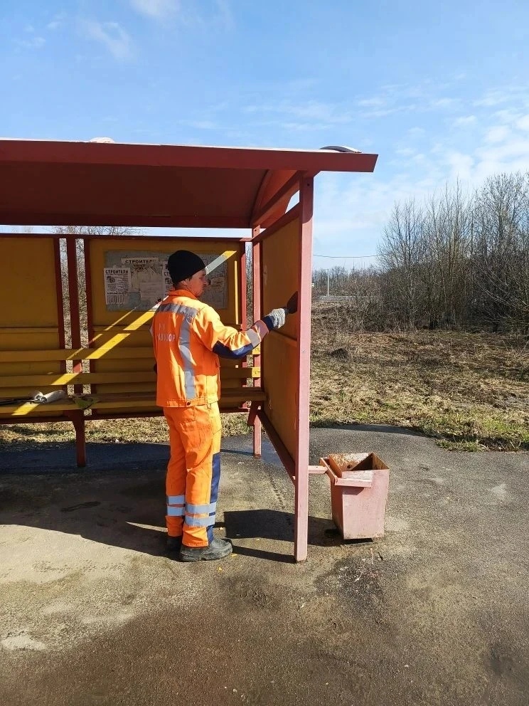 В Куркинском районе покрасили автопавильоны на автомобильной дороге Богородицк — — Товарковский — Куркино.