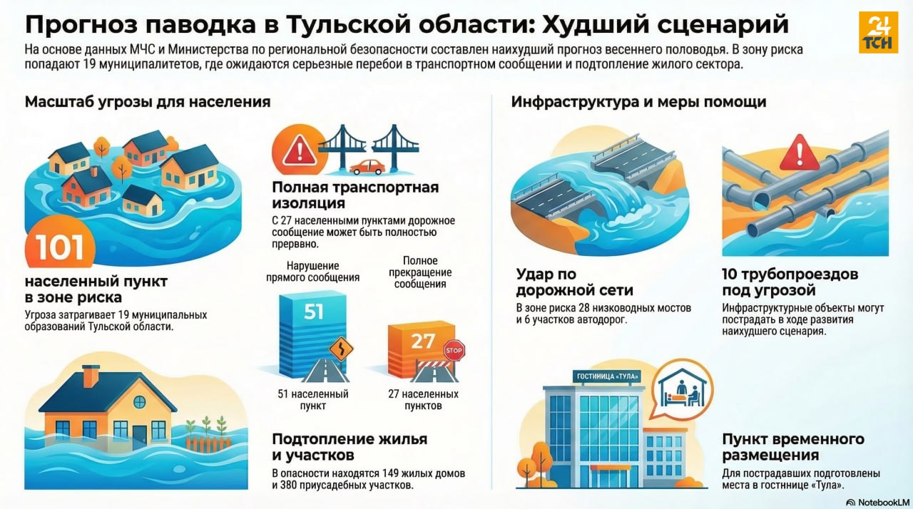 По данным от МЧС России Тульской области на 16 марта 2026 года, на Упе с трех гидропостов зафиксирован подъем уровня воды от 1 до 4 см за сутки. По данным ведомства, масштаб половодья будет определяться метеорологическими условиями конца марта и апреля, которые трудно прогнозируются.
