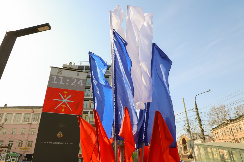 На улицах и общественных пространствах Тулы установлены праздничные флаговые композиции.Они размещены:на площадях Ленина, имени 50-й Армии и Крестовоздвиженской,у памятников В.Ф. Рудневу, С.И. Мосину, «Катюше»,у Тульского...