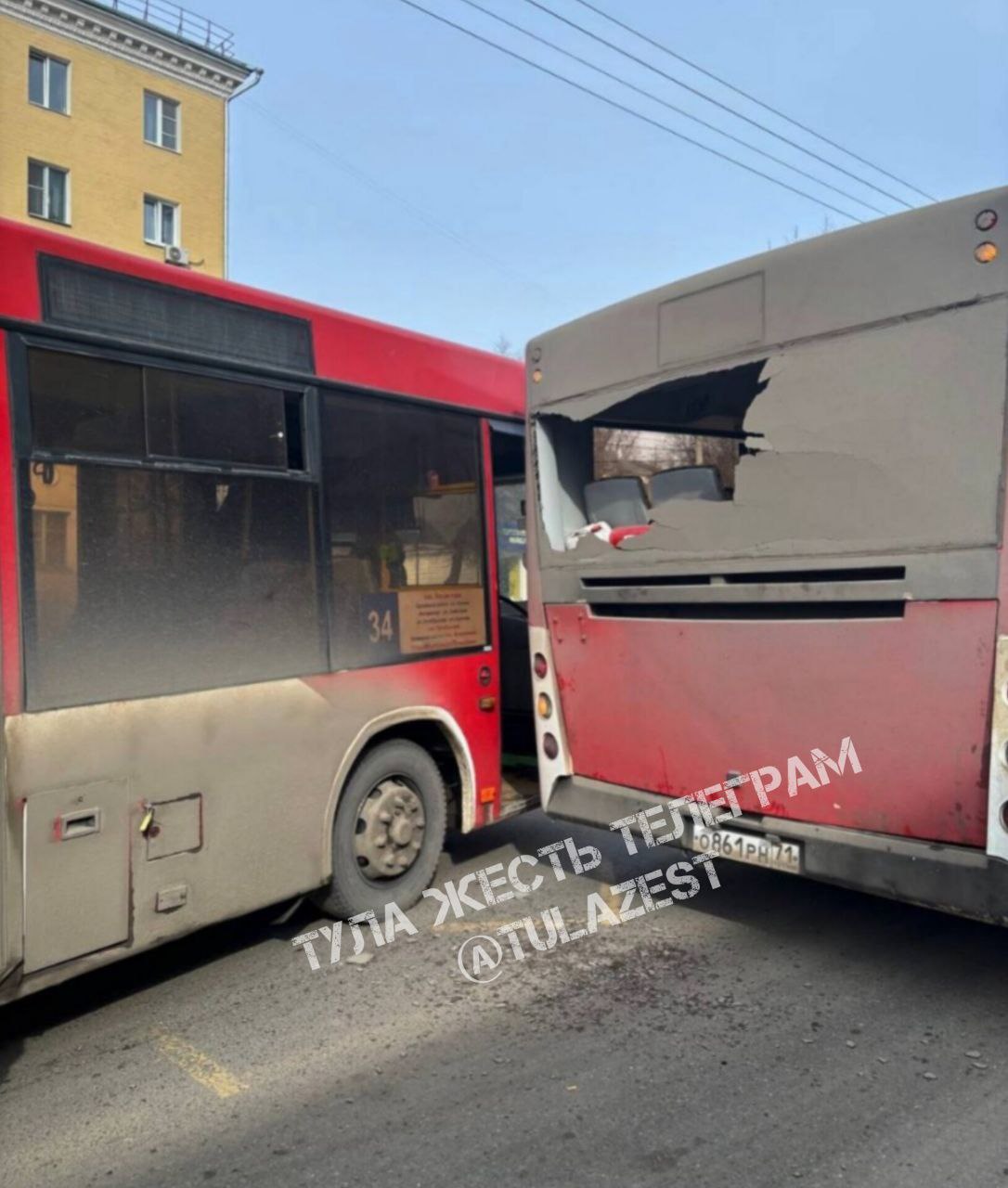 Два автобуса столкнулись на улице Максима Горького в Туле