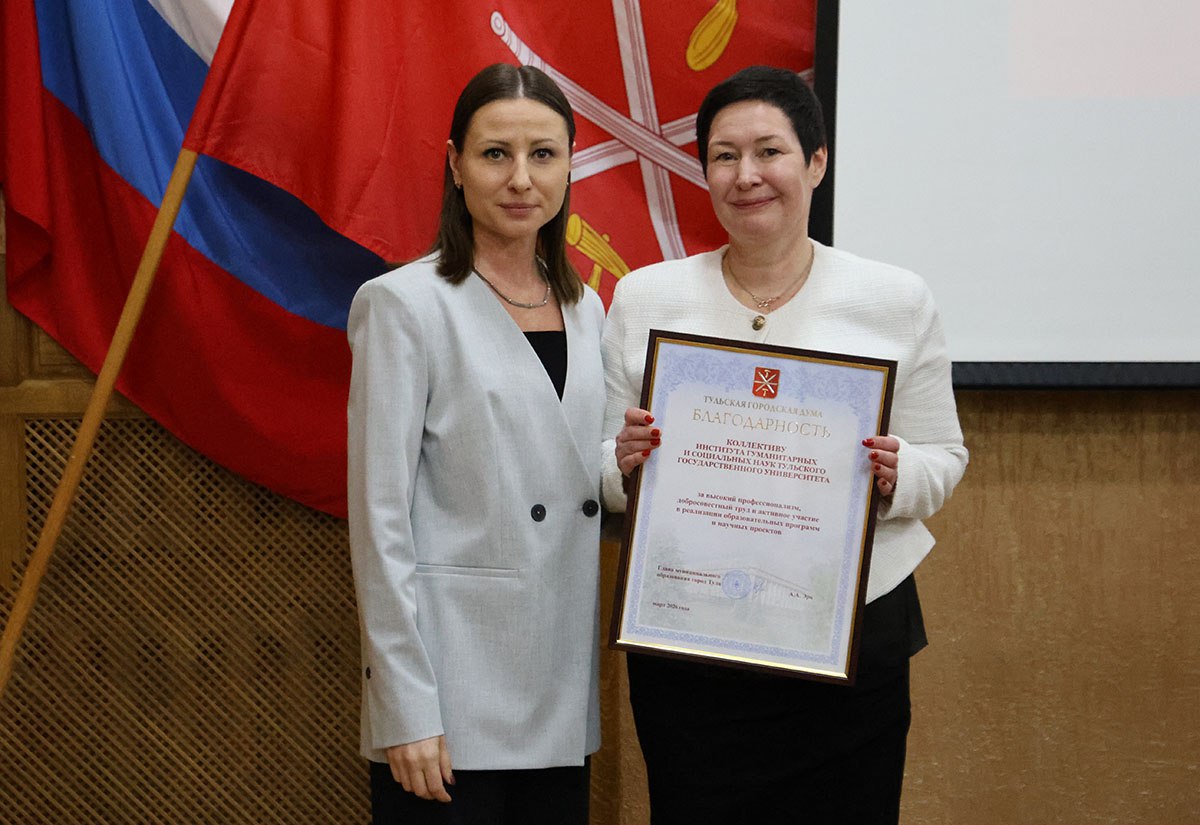 Депутат вручила коллективу института гуманитарных и социальных наук ТулГУ Благодарность Тульской городской Думы.