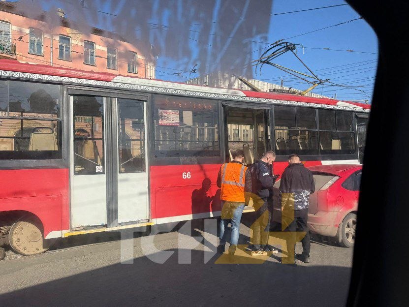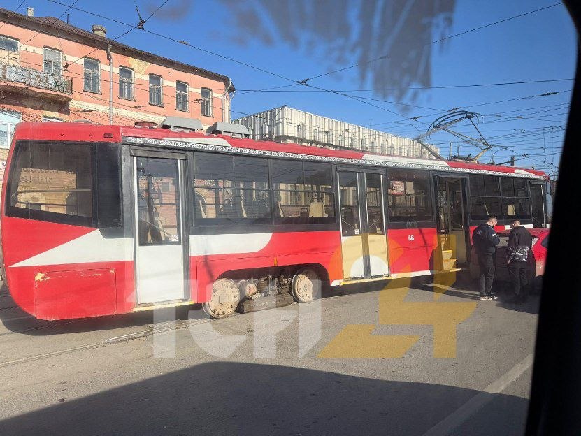 Трамвай столкнулся с легковушкой на перекрестке улиц Советской и Фридриха Энгельса