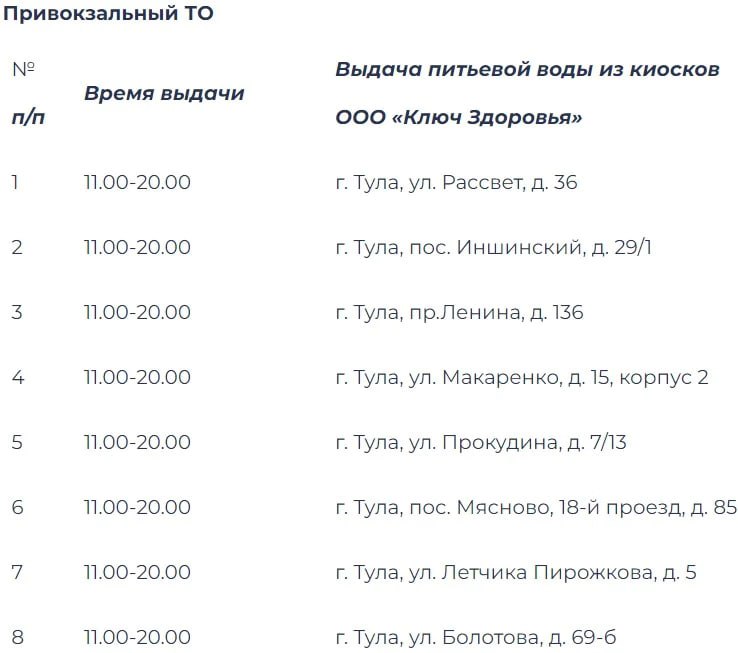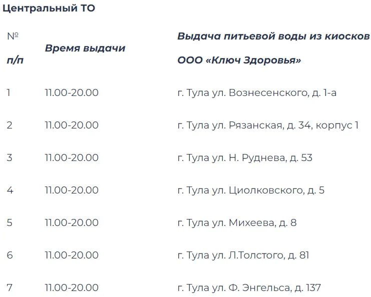 Напомним, коммунальная авария оставила без воды южную часть города. Восстановительные работы провели, но качество водоснабжения снижено. До восстановления нормативных показателей тулякам бесплатно будут раздавать воду. Адреса на картинках