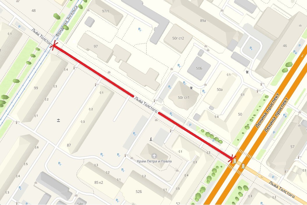 Это связано с проведением работ по замене участка сети водоснабжения. Ограничение будет действовать с 09:00 до 23:59 для всех видов транспортных средств на участке от пр. Ленина до ул. Фридриха Энгельса.