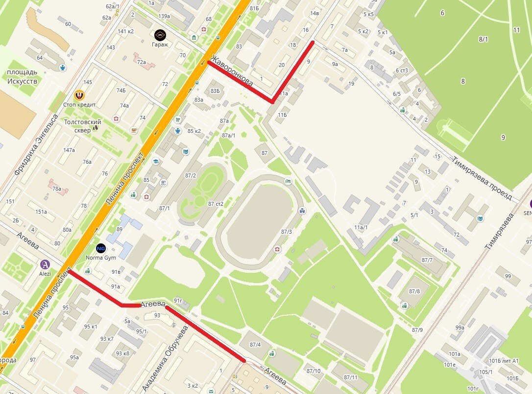 В этот день на центральном стадионе «Арсенал» пройдет футбольный матч. Ограничения коснутся участков от ул. Мориса Тореза до пр. Ленина по ул. Жаворонкова, от ул. Жаворонкова до проезда Тимирязева по ул. Мориса Тореза, от ул. Н. Руднева до пр. Ленина по ул. Агеева.
