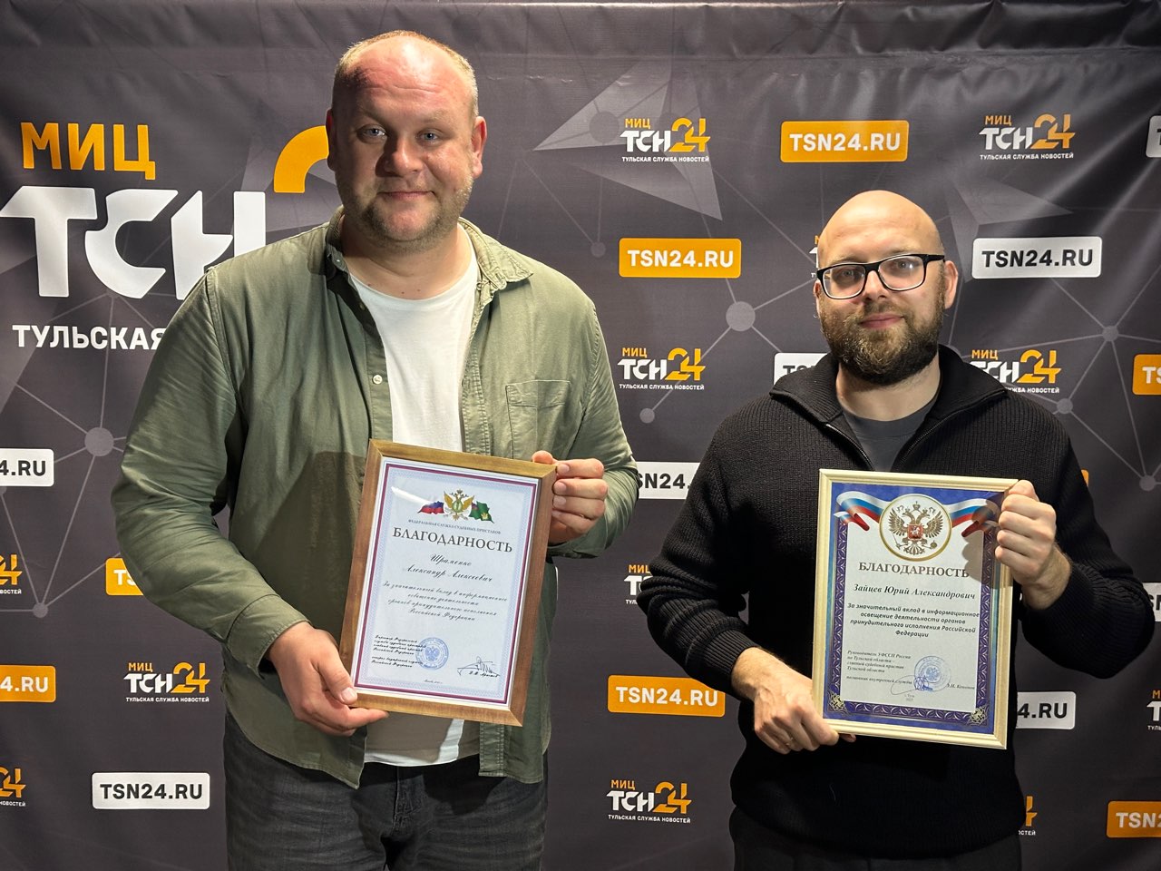 Награды программному директору Александру Шраменко и главному редактору сайта Юрию Зайцеву были вручены в рамках пресс-ланча руководителей СМИ с главным судебным приставом региона Эдуардов Кононовым.