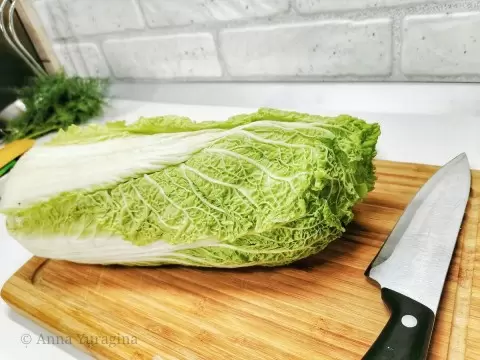 - Пекинская капуста: выбрать нежные верхние листья, тонко нашинковать.