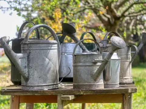 - Сделайте поилки для птиц и насекомых из старых леек.