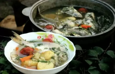Сначала рыбу нужно тщательно очистить; головы и хвосты можно использовать для бульона. Их заливают водой и ставят на медленный огонь, варят 30 минут, затем удаляют. Нарезать рыбу на небольшие кусочки, а бульон процедить и вернуть на огонь.