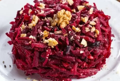 Салат из тертой свеклы с фасолью и орехами