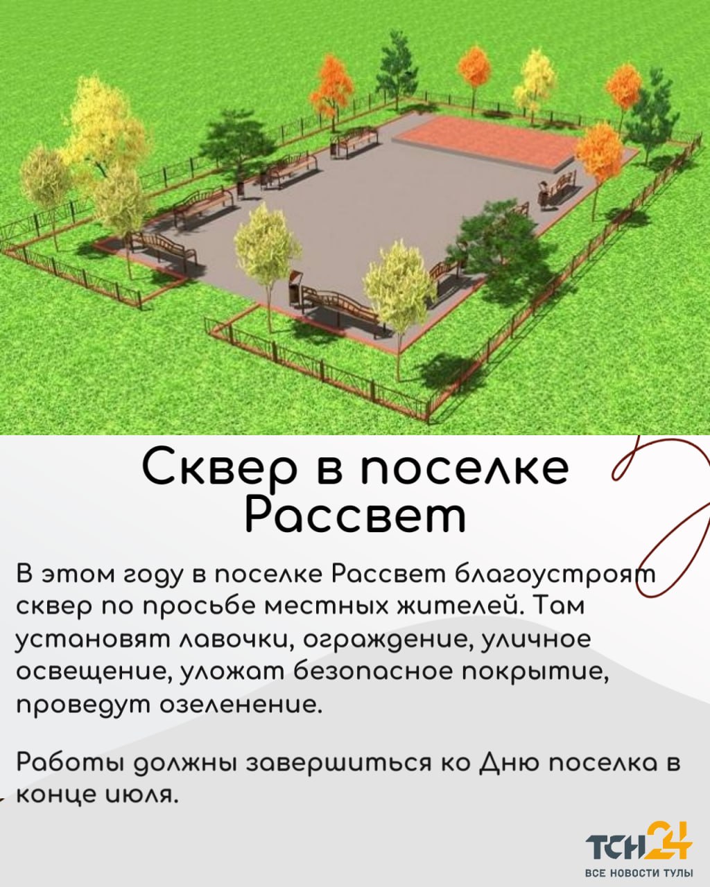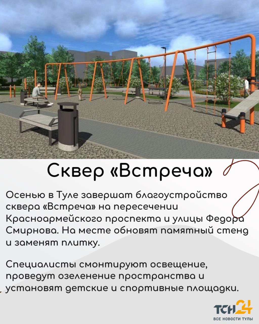 В каких районах Тулы обновятся общественные пространства? В карточках ТСН24 собрали подборку скверов.