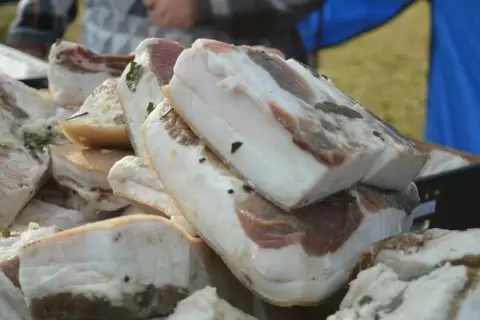 На ярмарке гости могли ознакомиться с десятками уникальных видов сала, предлагаемых местными производителями. Любители кулинарных изысков могли попробовать сало с чесноком, перцем, тмином и укропом, а для более смелых гурманов были предусмотрены оригинальные рецепты с грибами. Прежде чем сделать покупку, каждый желающий мог отведать всю представленную продукцию.