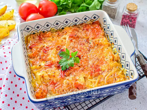 2. Обжарка овощей: На сковороде разогреть масло и обжарить полукольца лука в течение 3-4 минут. После этого добавить нарезанные помидоры и продолжать готовить ещё 4-5 минут. Не забыть добавить соль и специи по вкусу.