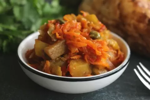 Представляем вам невероятно простое и быстрое блюдо — тушеные баклажаны с овощами, сочетающие в себе яркие ароматы и насыщенные вкусы. За полчаса на вашей кухне будет готово нечто особенное, что можно подавать как в горячем, так и в охлажденном виде. Это блюдо станет отличной закуской или легким гарниром к основному блюду, а возможность варьировать количество ингредиентов позволяет адаптировать его под любые предпочтения. Любители остроты могут добавить свежий перец, а мелко нарезанная зелень придаст ему дополнительный аромат.