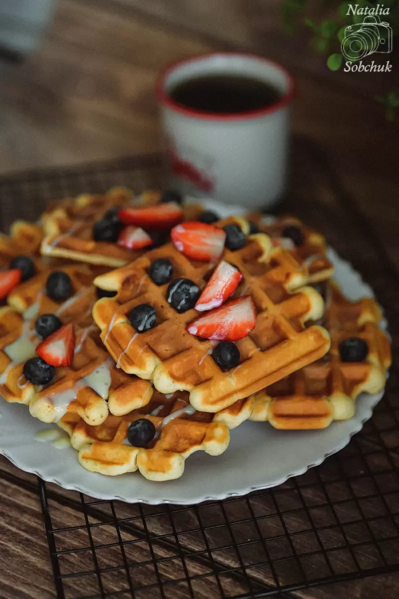 Муку стоит просеять вместе с разрыхлителем и аккуратно ввести в основную массу, чтобы избежать комков. Затем готовое тесто выложите в разогретую вафельницу или мультипекарь, выпекайте около 5-8 минут до появления золотистой корочки. Среднее количество порций — около 10 крупных вафель. Подавать их лучше всего с сгущенкой и свежими ягодами, что добавит не только вкус, но и красочный вид на ваш завтрак!