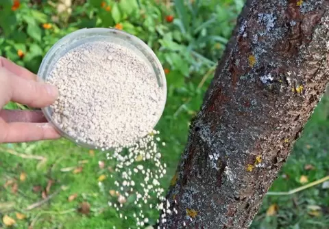 Для взрослых деревьев можно также использовать комбинированные растворы. Для этого в 10-литровый контейнер с водой добавляют 20 граммов суперфосфата и 30 граммов сульфата калия. После тщательного перемешивания смесь можно использовать для полива деревьев.