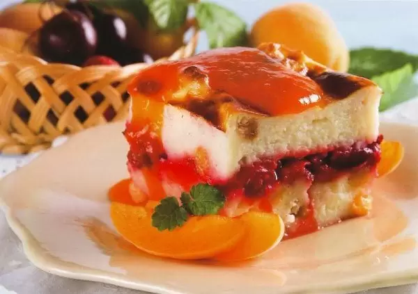 Как только запеканка будет готова, аккуратно переложите её на тарелки и полейте абрикосовым вареньем. Этот сладкий штрих станет отличным дополнением к нежной текстуре манной запеканки. Главное, не забыть, что лучше всего такое угощение подаётся сразу после приготовления, когда оно еще теплое.