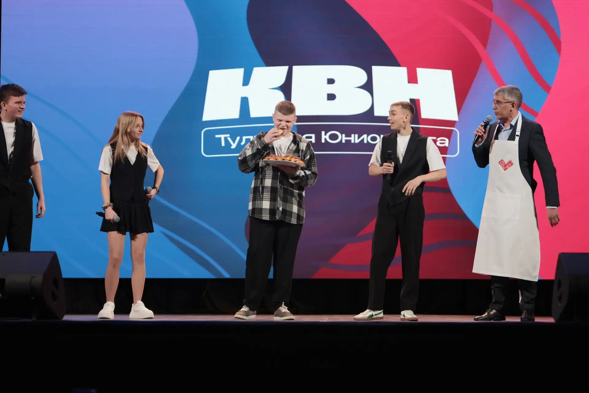 18 апреля прошел первый полуфинал Тульской юниор-лиги КВН. Первые. Губернатор не только посетил его, но и принял в нем участие в составе команды «Три кота».