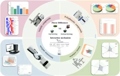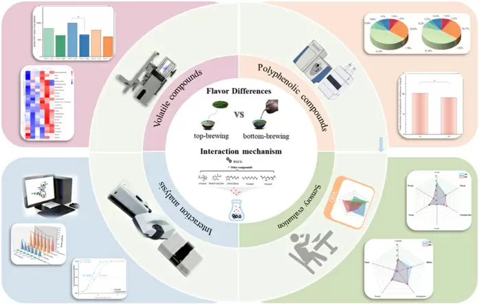 Китайские исследователи провели интересное сравнение двух способов заваривания зеленого чая — верхнего и нижнего, обозначаемых в отчете как top-brewing и bottom-brewing. Эти термины можно перевести как «верхнее» и «нижнее заваривание», что, конечно, вызывает легкую ассоциацию с пивным брожением.