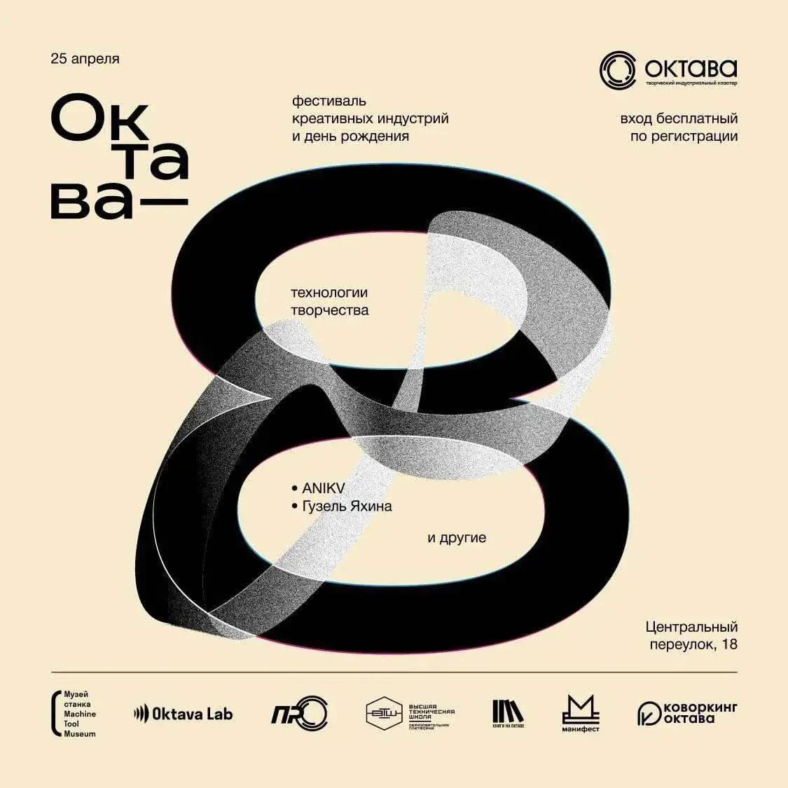 25 апреля на площадке кластера состоится Фестиваль креативных индустрий «ОКТАВА-8. Технологии творчества», приуроченный ко Дню рождения кластера.