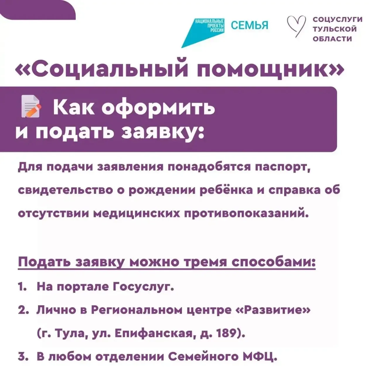 Для этого в Тульской области работает служба «Социальный помощник». Это бесплатная поддержка для семей с детьми до трёх лет.