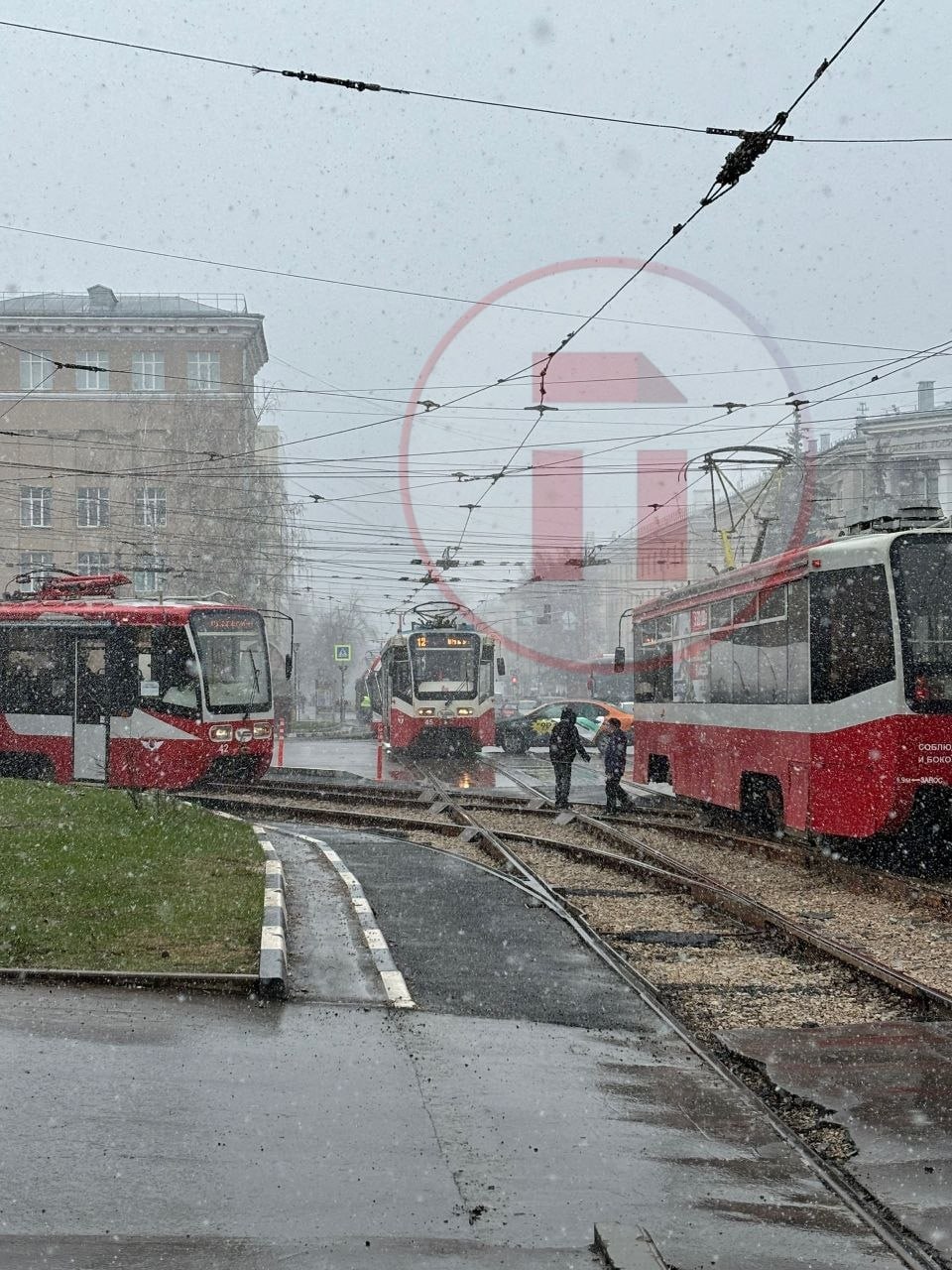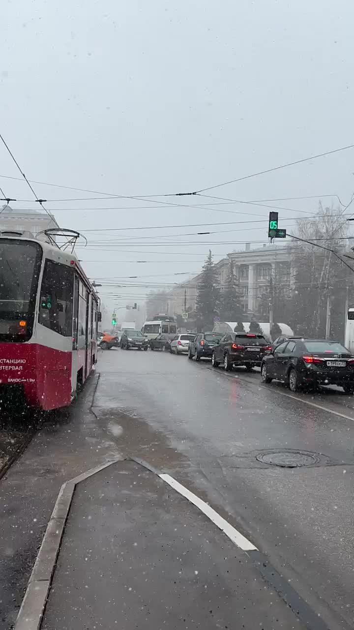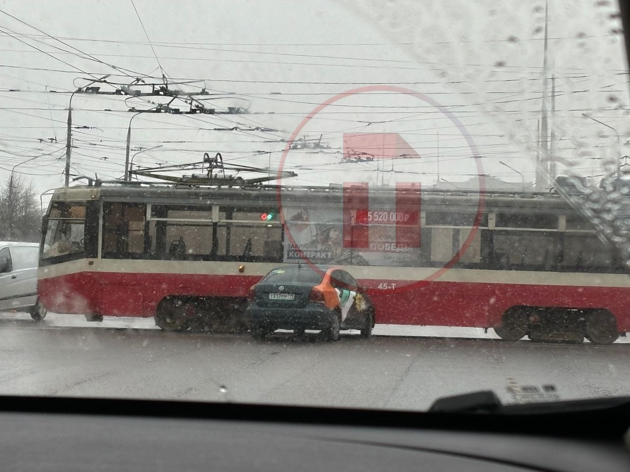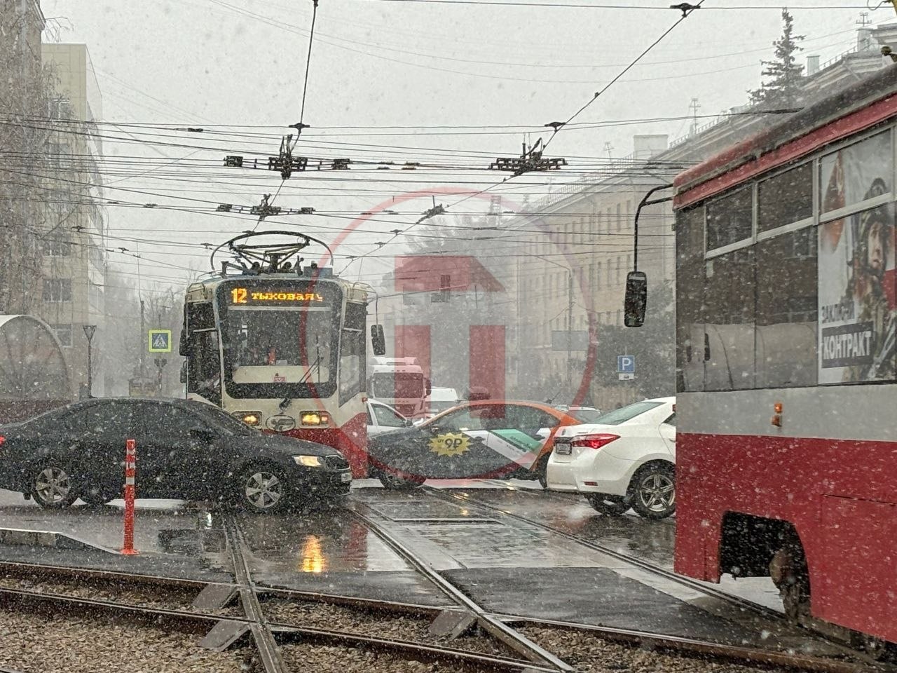 Не знаем, на что надеялся водитель каршеринга (проскочить?), но движение он перекрыл. Сейчас на месте работают инспекторы ГИБДД.Так что, если вы ждете трамвай... наберитесь терпения.