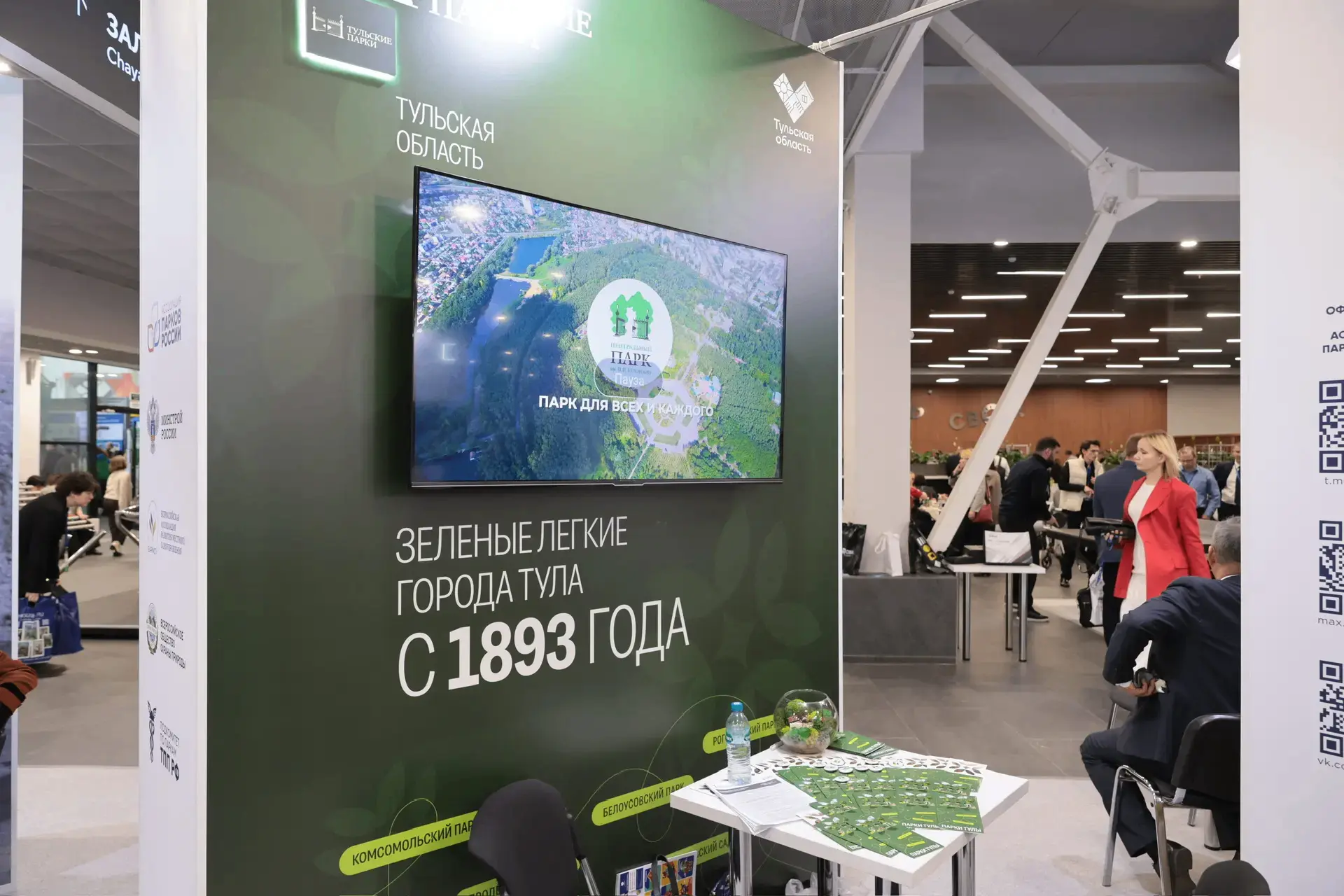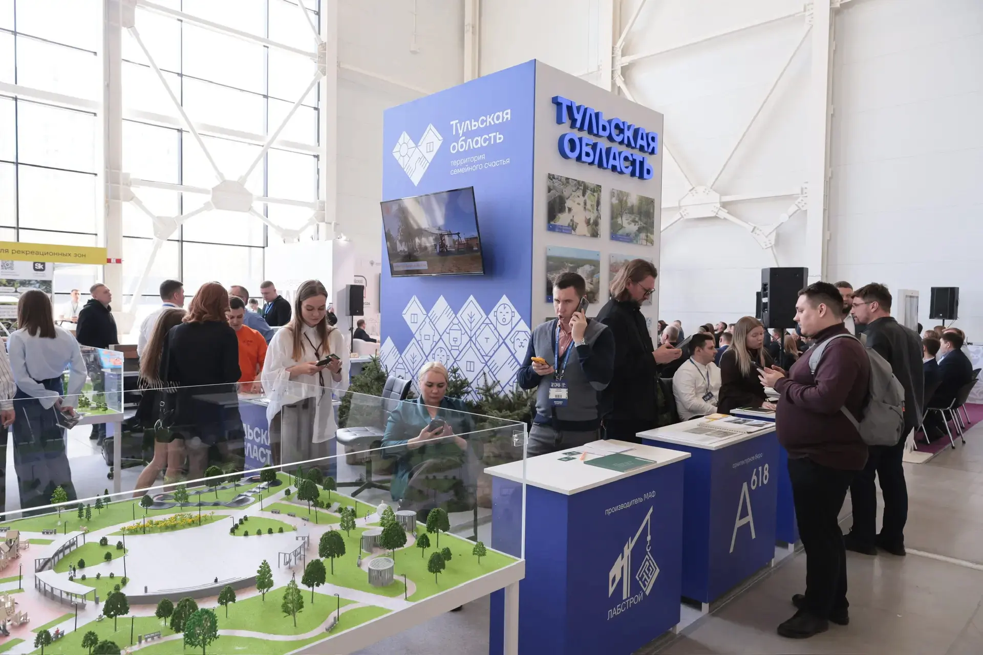 осмотрел стенд Тульской области с достижениями в благоустройстве общественных пространств по федеральному проекту «Формирование комфортной городской среды»;