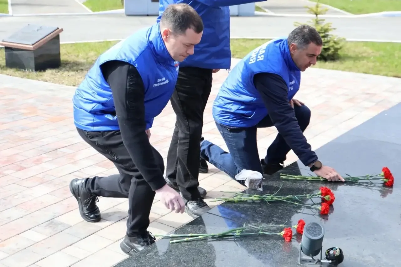 Они также возложили цветы к мемориалу «Защитникам Родины».