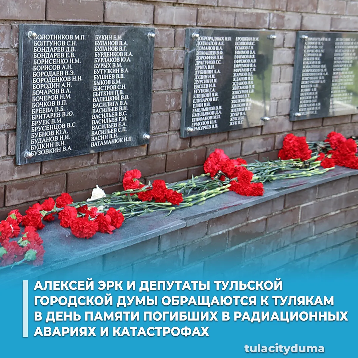 Глава города Тулы Алексей Эрк и депутаты Тульской городской Думы обращаются к тулякам в День памяти погибших в радиационных авариях и катастрофах