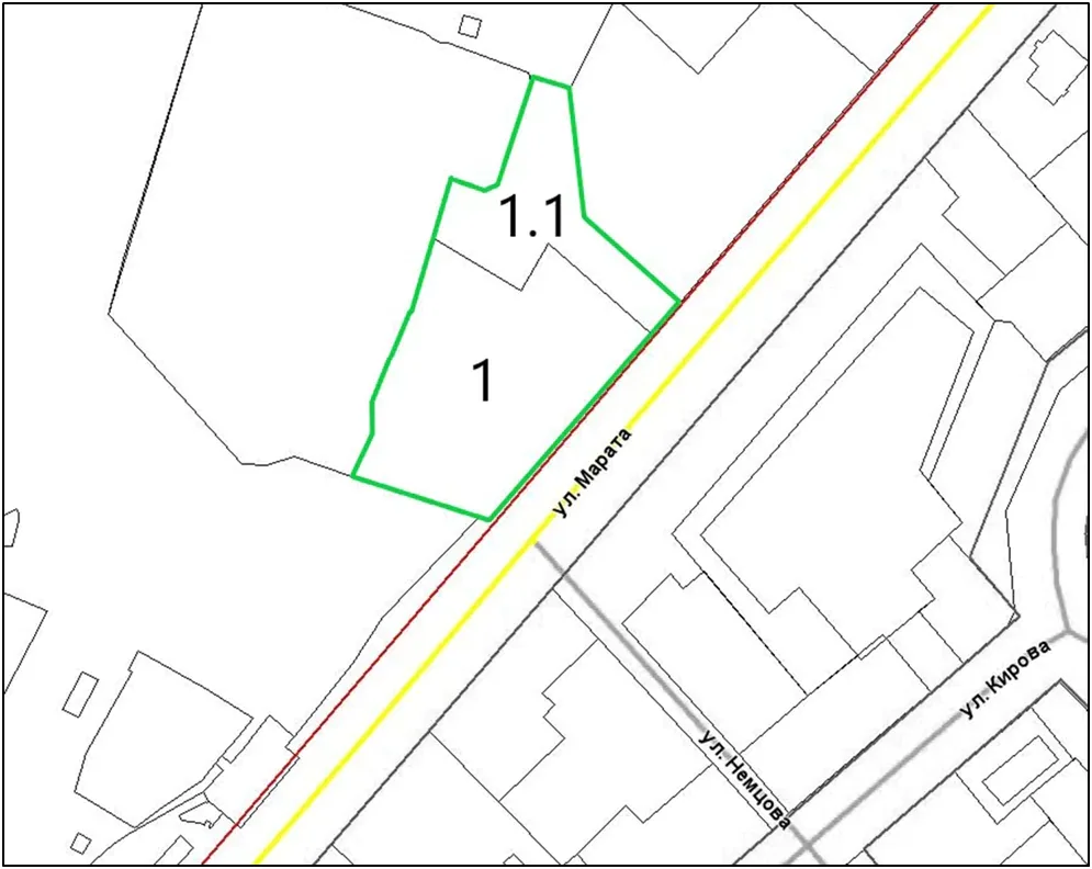 1По улице Марата допускается строительство высоток и среднеэтажных домов, медучреждений, детсадов и школ, спортивных площадок и т. д. Предельная высота зданий установлена в 90 метров, максимальный процент застройки — 40.
