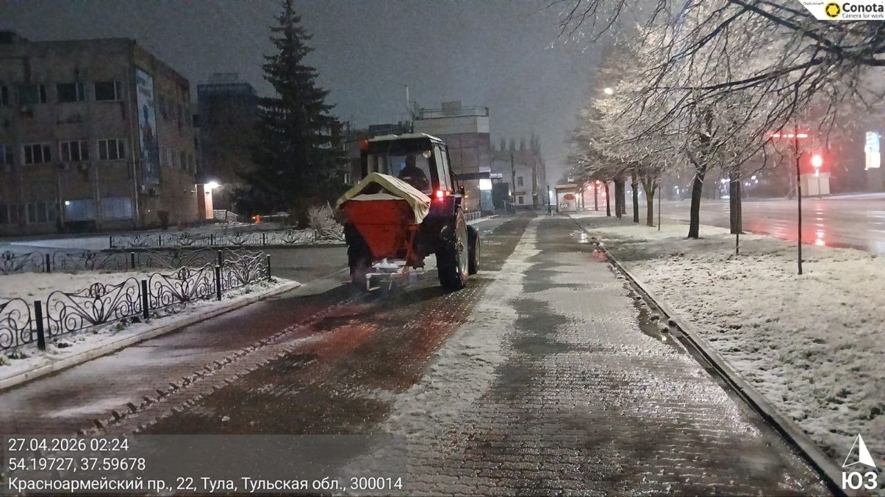 В ночь на 27 апреля на Тулу обрушилась непогода. На борьбу с осадками вышли сотрудники ООО «САХ». Коммунальные службы начали обрабатывать дороги реагентом. В первую очередь они уделили внимание спускам, подъемам, опасным участкам, мостам и путепроводам, используя КДМ.