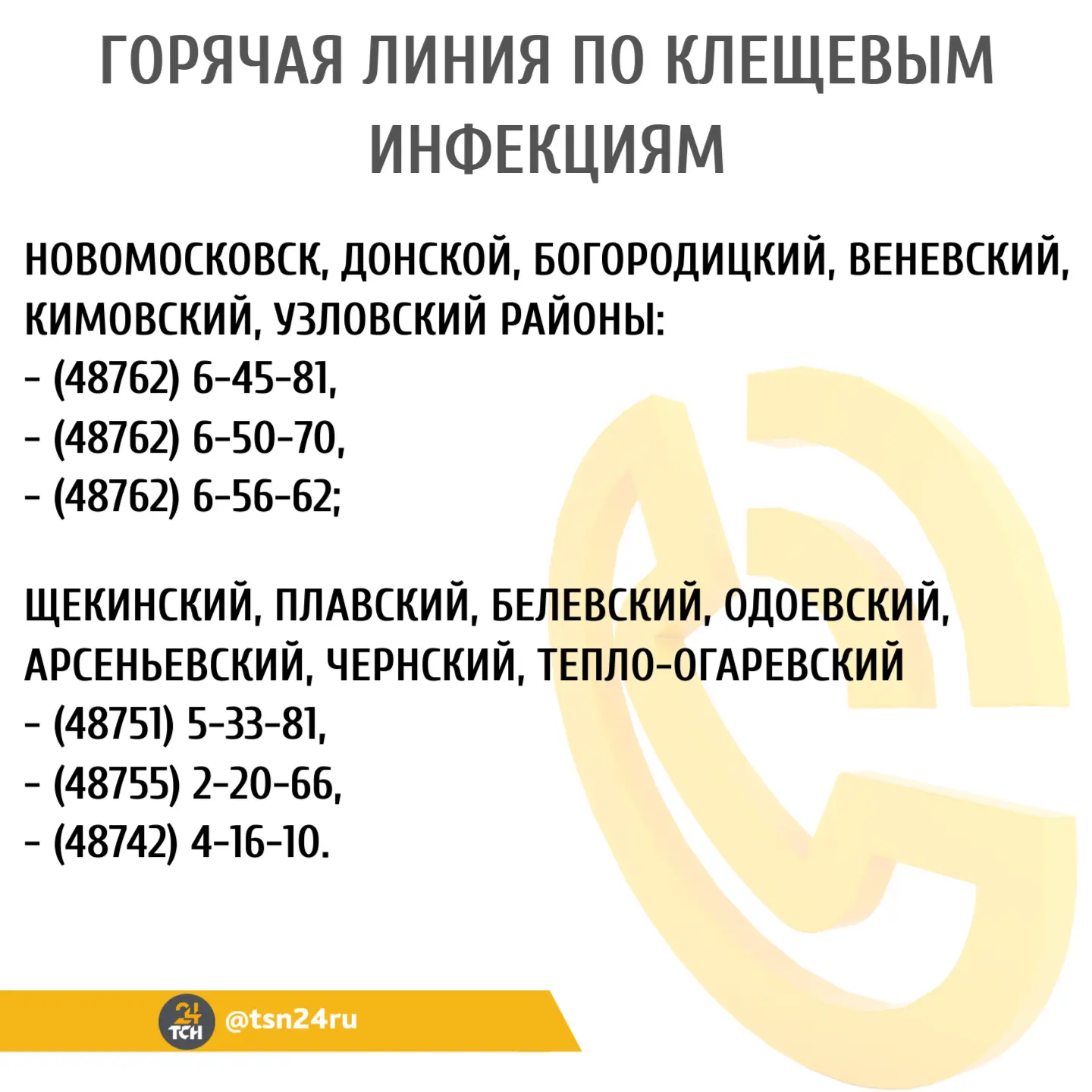 Доступны онлайн-консультации по email: epid@71.rospotrebnadzor.ru и epid@fbuz71.ru, а также круглосуточная «горячая линия» Роспотребнадзора — (4872) 55-55-50.