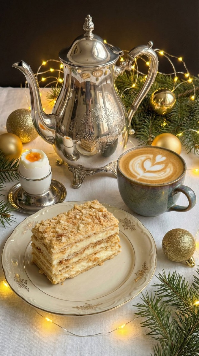 - Франция: Десерт известен как Мильфей (Mille-feuille), что переводится как «тысяча слоев». Французская версия менее пропитанная, а коржи более хрустящие.