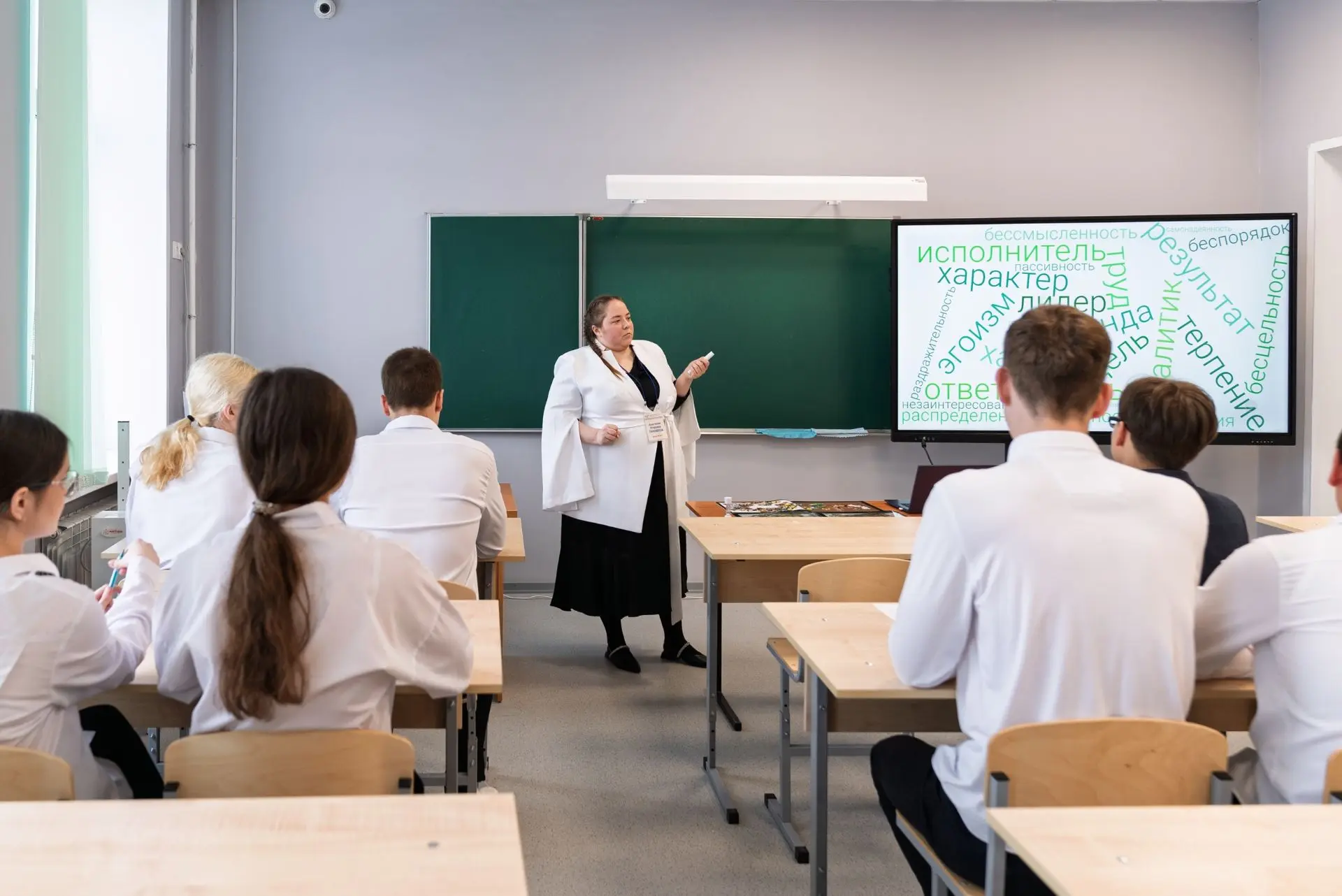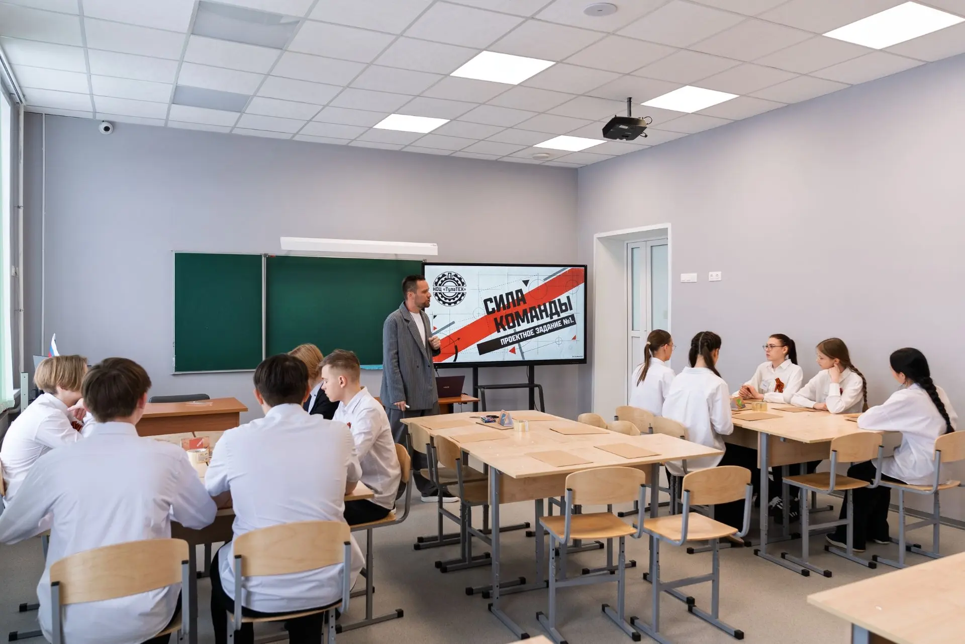 Конкурсный день для «учителей года» начался с Разговоров о важном. В преддверии Дня труда обсуждалась важность работы в команде.