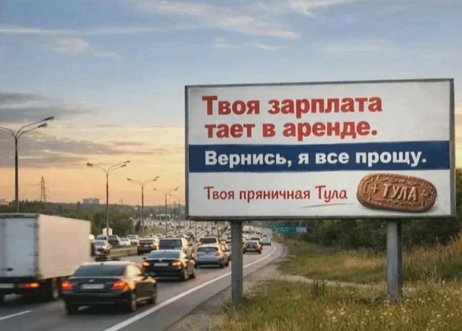 Интересный дизайн, правда? Проект представил профсоюз Центра медицины катастроф. Он призван «возвращать туляков» обратно в регион (поставят их на выезде). То есть в перспективе билборды с надписью «вернись, я все прощу»... помогут снизить отток квалифицированных специалистов и... привлекут уехавших туляков назад, в родные земли.