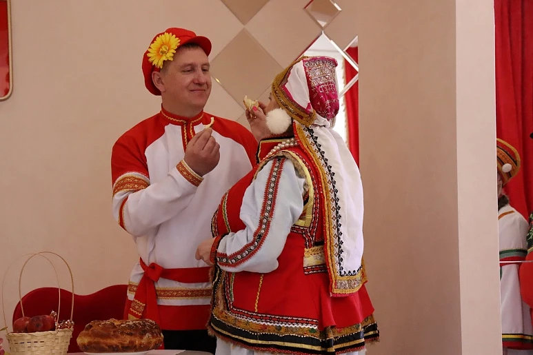 Центром праздника стала семья Ромашиных. Мария – представительница уникальной этнографической группы шокша, насчитывающей в России всего 10-15 тысяч человек. Ее супруг Владимир – русский. Вместе они воспитывают двоих детей, Елизавету и Кирилла, передавая им уникальные традиции народа шокша.